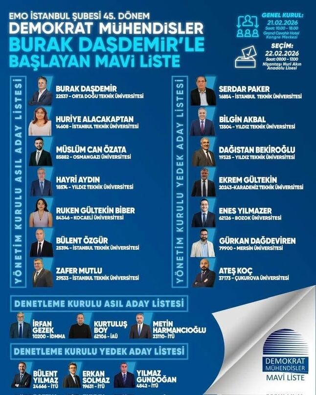 Salonun En Sert Cümlesi: “Gemisini Terk Edene /Batırana Tekrar Gemi Verilmez” Konuşmasının sonunda iki yıl önce yönetime aday 2 liste vardı. Tayfun Bey başkanlık adaylığından özveride bulundu. Demokrat Mühendisler olarak 14 arkadaşımızı ortak irade ile seçtiklerini, fakat başkan dahil 8 arkadaşın kendilerini seçenlere bilgi vermeden 1 yıl önce istifalarını verdiklerini ve genel kurula da 4 ay kala kendi grup listelerini çıkararak demokrat geleneği hiçe sayılmıştır. Deniz Kuvvetleri’nde Yedek Subaylık yaptığını belirten Akbal, sözlerini şu ifadeyle tamamladı: “Gemisini terk edene, gemisini batırana tekrar gemi verilmez.” Bu sözler genel kurul salonunda en çok konuşulan anlardan biri oldu. Sandık 22 Şubat’ta Kuruluyor EMO İstanbul Şubesi 45. Olağan Genel Kurulu kapsamında seçimler 22 Şubat 2026 tarihinde Nişantaşı Nuri Akın Anadolu Lisesi’nde gerçekleştirilecek. Yeni dönem yönetiminin belirleneceği seçimlerde üyelerin yoğun katılım göstermesi bekleniyor. KENTİM HABER MERKEZİ