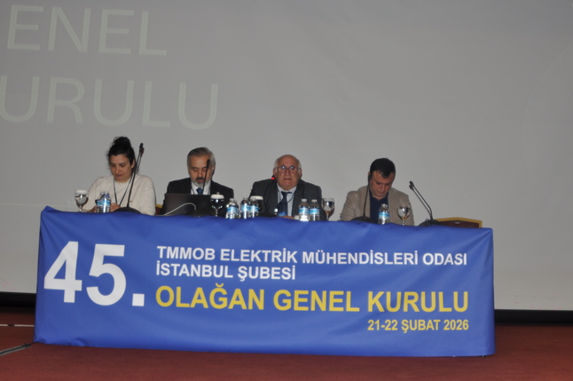 Cevahir’de Yoğun Katılım, Kritik Mesajlar Elektrik Mühendisleri Odası İstanbul Şubesi’nin 45. Olağan Genel Kurulu, 21 Şubat tarihinde Cevahir Kongre Merkezi’nde gerçekleştirildi. Genel Kurul’a çok sayıda üyenin yanı sıra sivil toplum kuruluşları ve siyasi parti temsilcileri de katıldı. Genel Kurul; açılış, divan heyetinin oluşturulması, saygı duruşu ve İstanbul Şube Yönetim Kurulu Başkanı Burak Daşdemir’in konuşmasıyla başladı. Süreç boyunca çalışmaların ortak akıl çerçevesinde değerlendirileceği ve yeni dönemin üyelerin katkılarıyla şekilleneceği vurgulandı.